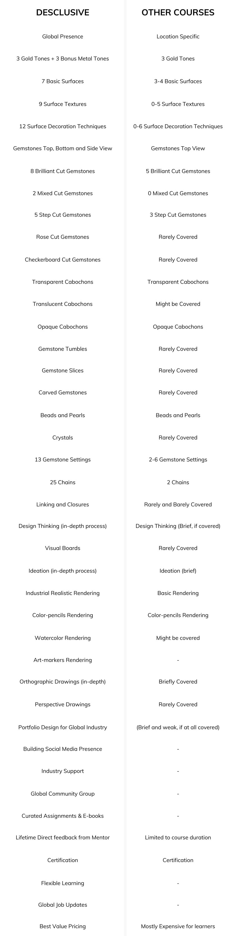 Many aspiring jewelry designers around the world dream of launching their own brands, but financial constraints, geographical barriers, or other challenges prevent them from enrolling in physical courses. At the same time, there are students whose parents are investing significant amounts in jewelry design education, yet they aren’t receiving the right training due to outdated curriculums and a lack of skilled educators. Essential topics like technical drawings and design thinking are often overlooked, and aspects like portfolio building and job assistance are rarely covered, leaving students lost and struggling.